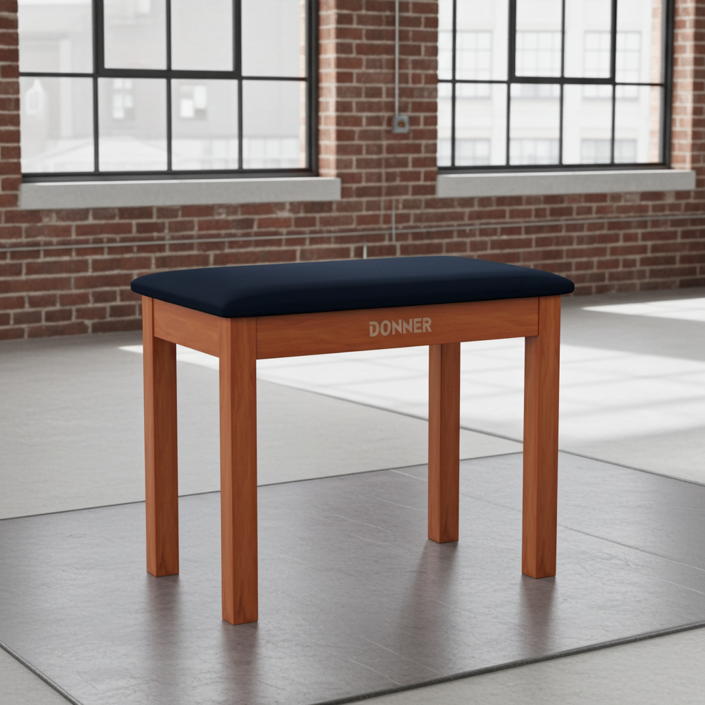 Donner Piano Bench with Storage, Solid Wood Keyboard Bench Piano Bookcase Stool Chair Seat with High-Density Suede Cushion, Wood Finish Colour